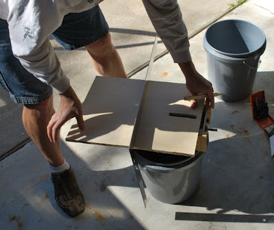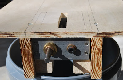 Now a plywood top with slit for the grain.
